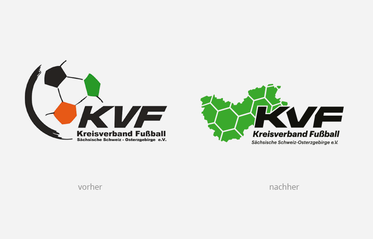 15 Jahre nach der ursprünglichen Gestaltung durften wir das Logo des Kreisverbands Fußball Sächsische Schweiz - Osterzgebirge e. V. neu interpretieren. Auf Grundlage des bestehenden Designs und der Wünsche des Kunden entstand so ein moderner, frischer Auftritt, der Bewährtes bewahrt und gleichzeitig Neues zulässt.